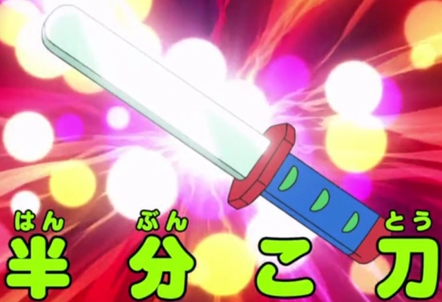 哆啦A梦拿起一分为二刀往自己身上一切,将自己切成了两半