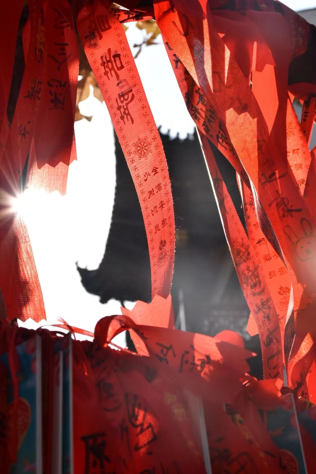 石阶上是来此祈求好运的人们