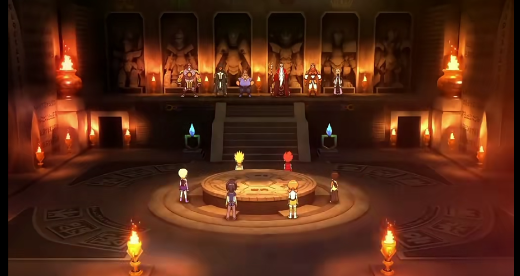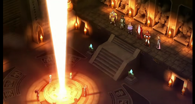 席罗大长老:六位族子已经到齐,仪式可以开始了/转动手中的法杖,在碰到地面的瞬间,大殿内的灯光瞬间亮起