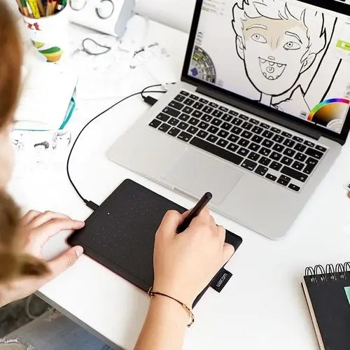 手绘板也称之为数位板,俗称“板子”,是一种计算机输入设备,主要用于在计算机上进行绘图和创作,通常由一块板子和一支压感笔组成,通过电磁式感应原理工作,使得用户可以在数字板上自由绘制,同时板子上的图像会随着笔的移动而变化。简单来说就是你在板子上用板子自带的触屏笔绘画线条可以在连接的设备上显示,它通常适合屏幕较小的手机和无法触屏的电脑,由一根电线连接设备。