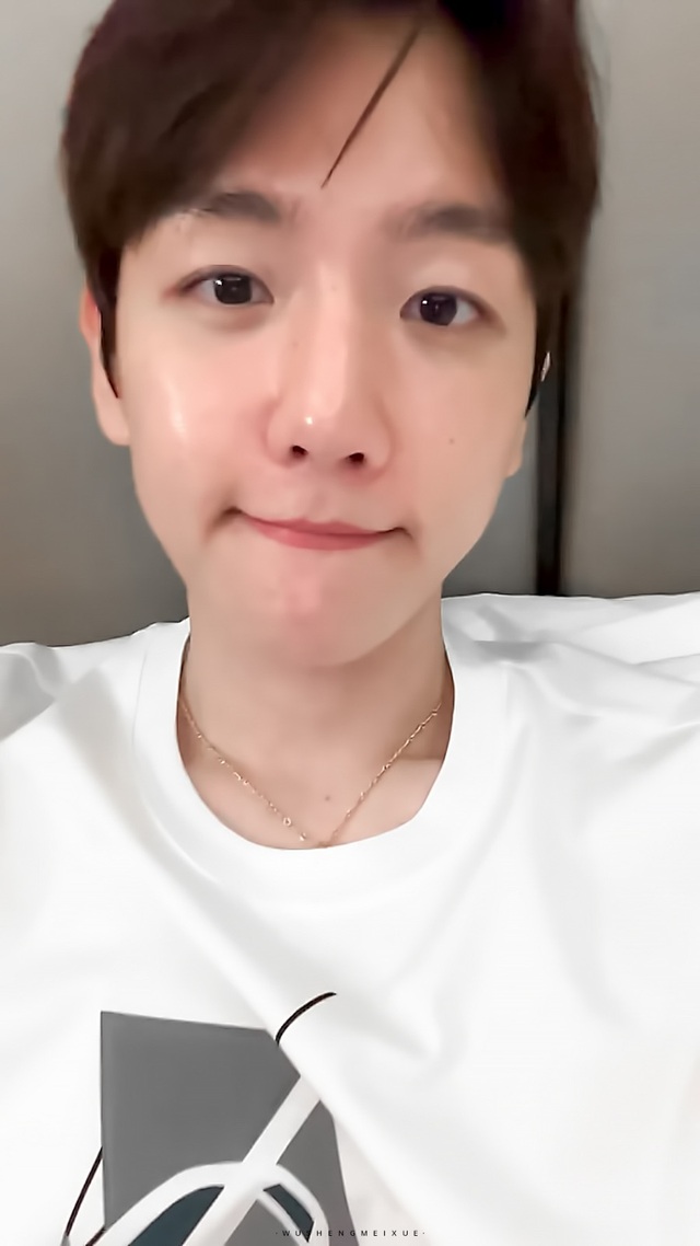 边伯贤已经快速冲了个澡,换上了一件简单的白色棉质T恤和宽松的牛仔裤,头发半干,身上带着清爽的沐浴露香气,先前练习时的凌厉气场已经完全收敛,又变回了那个笑容温暖亲切的前辈音乐人。