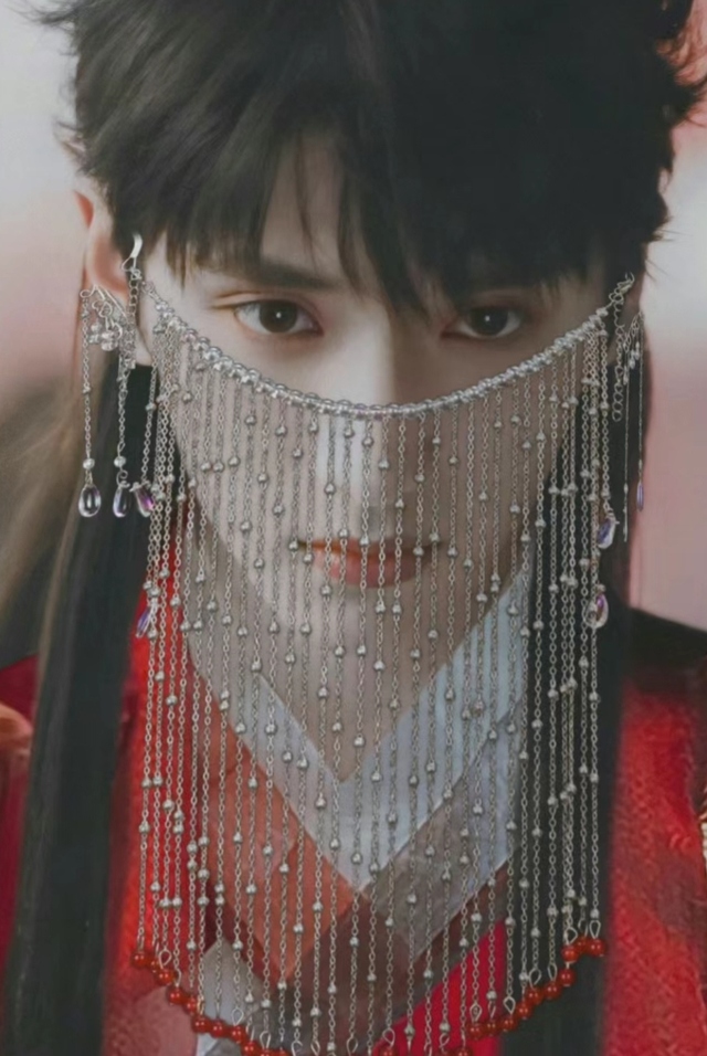 这位少年眉宇间透出一股英气,五官精致得恰到好处。他深邃的眼窝里藏着一双似乎能洞察人心的眼睛,每一次目光流转都如同轻柔的羽毛拂过心湖,撩拨起层层涟漪。他的肌肤如同初雪般洁白无瑕,与楸纛愉有着异曲同工之妙。半遮面的面纱之下,隐约可见一抹红唇的轮廓,增添了几分神秘与诱惑,整个形象帅气中带着一丝难以言喻的魅力。
