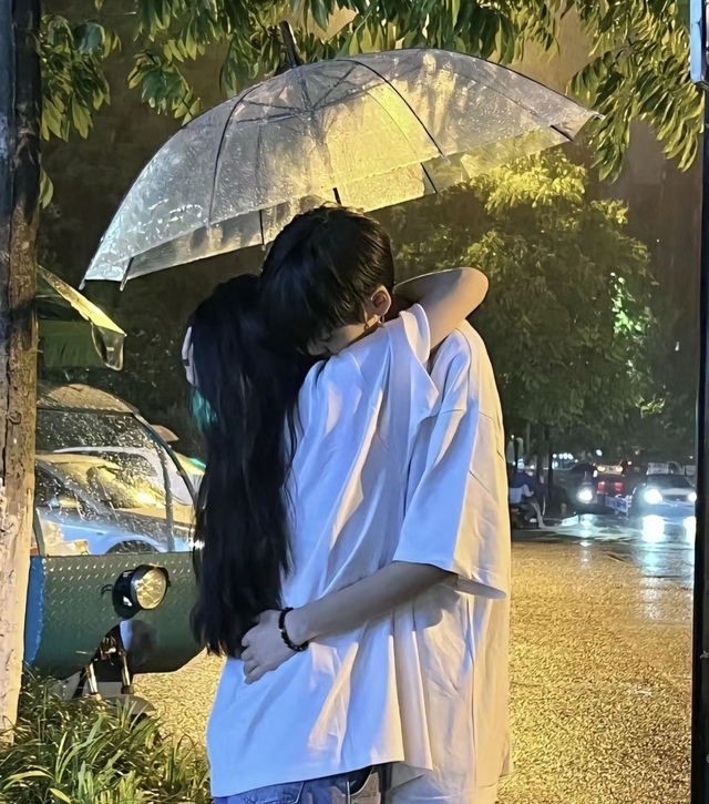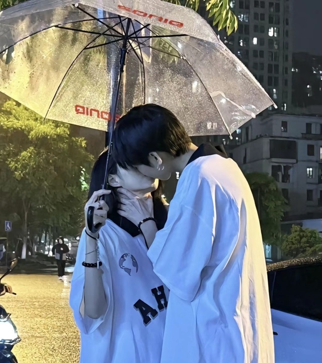 当夜幕低垂,细雨如丝般轻拂过城市的每一个角落时,他与她不期而遇。一把透明伞成了他们之间最浪漫的桥梁,雨水在伞面上轻轻敲打着节奏,似乎在诉说着关于相遇与缘分的故事。他们穿着朴素的白色T恤搭配牛仔裤,简单却异常契合,就像是命运特意安排好的一场邂逅。四周车灯闪烁,将夜色点缀得分外迷人,而那些光芒也在雨后湿润的地面上留下一道道温柔的轨迹。此时此刻,两人的心跳声似乎比任何语言都要响亮。