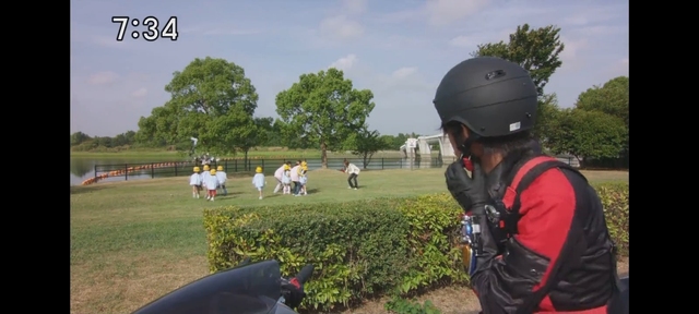 弘开着摩托车突然又停下来了