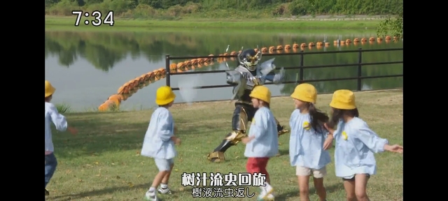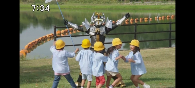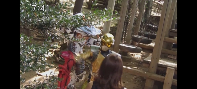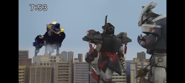 然后他们4个人进行着操作合体成了Go-Busters王,消灭了第二台梅塔佐德阵和J驾驶者Buster Machine消灭了第一台梅塔佐德