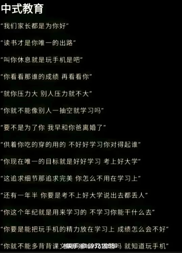 #作者紫皖原生家庭是什么? 是饭桌上的教育 是眼泪拌饭 是直不起的腰 是没有做错任何事无缘无故的骂 是父母亲的出气筒 是永远挨不完的打骂 是大的要让着小的 是时好时坏窒息家庭 是在公共场所让自己丢尽脸面的父母 是中式语言 是永远没有的选择权 是用旧时代教育让你走进新时代 是动不动摔碗筷的父母 解释等于犟嘴 不说话等于哑巴 没听清等于聋 掉眼泪等于矫情 原生家庭一辈子的阴影