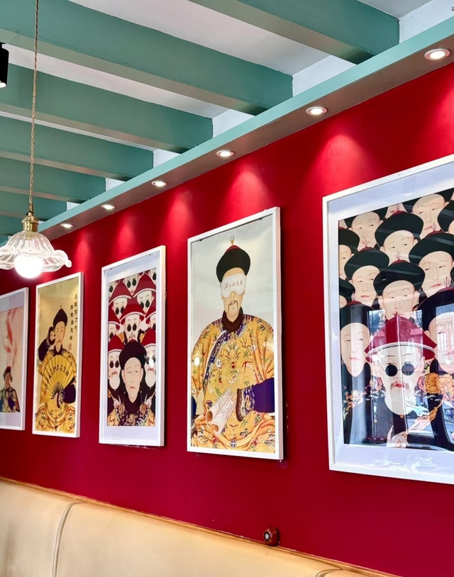 墙上挂了许多,历代清朝帝王的画像。小射灯一照下来,挺有那感觉的。