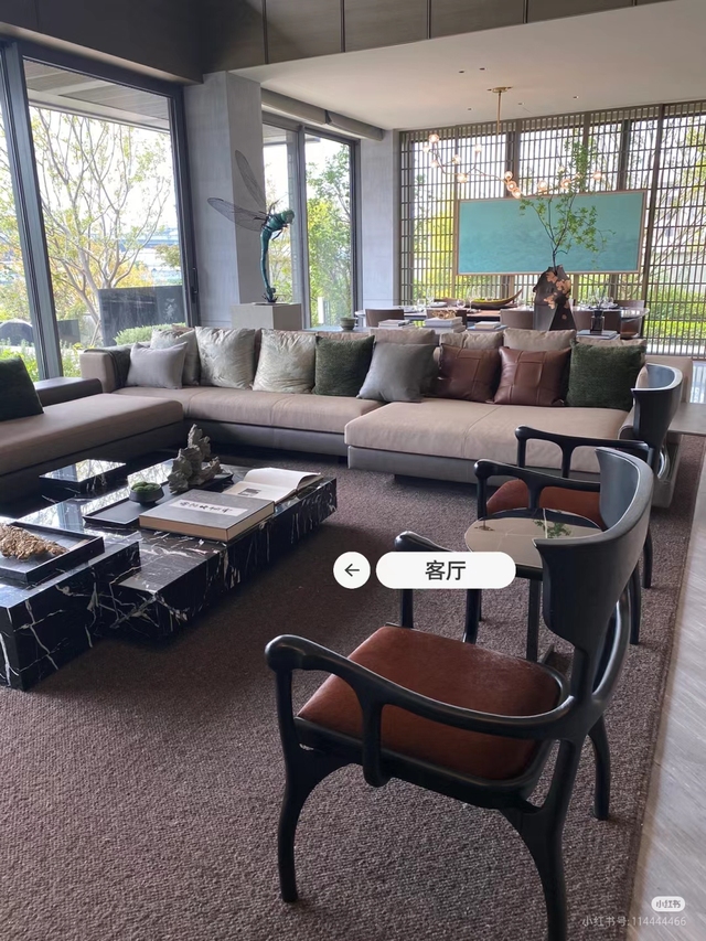 整个别墅,都是妥妥新中式风格,一楼客餐厅相连,二楼有一个茶室,特别是屏风都非常不错。