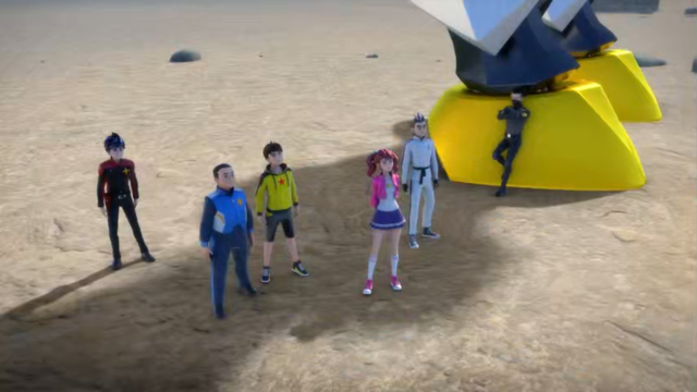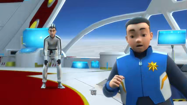 星盘仔看到星甲超人,就明白他们在救人,就帮他们引开狼狈怪