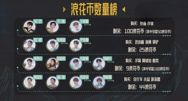 马嘉祺,刘耀文,赵昭仪,侯雯元:9个浪花币(其中贷款一百个浪花币)