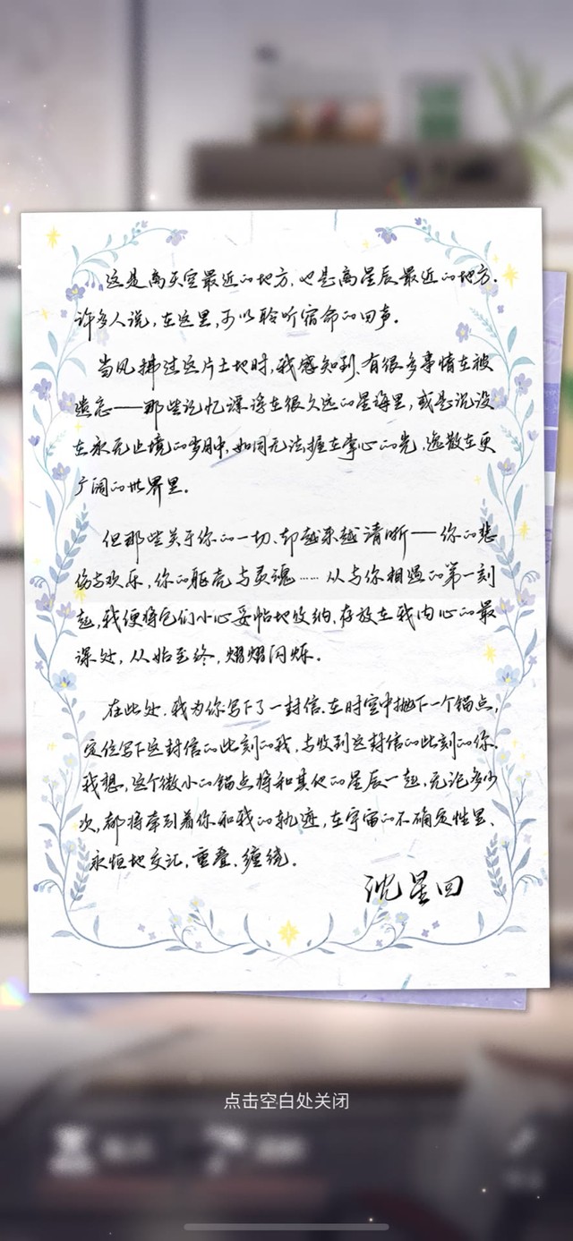 在此处,我为你写下了一封信,在时空中抛下一个锚点,定位写下这封信的此刻的我,与收到这封信的此刻的你。