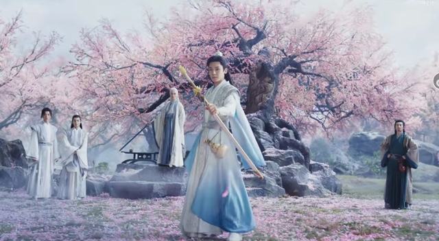 【古尘腾空而起,漫天桃花裹挟而来,形成一股巨大的力量,磅礴浩然。顷刻间,桃花化为利刃,蓄势待发。