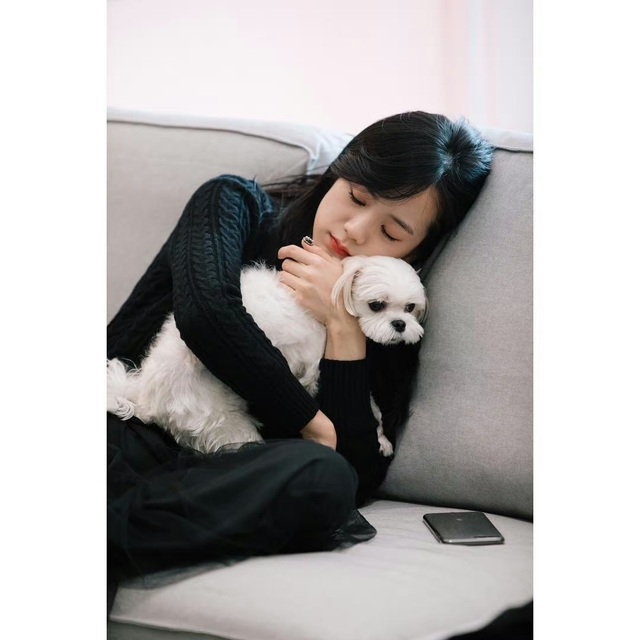 *抱着狗狗在沙发上眯一会的周知楠*