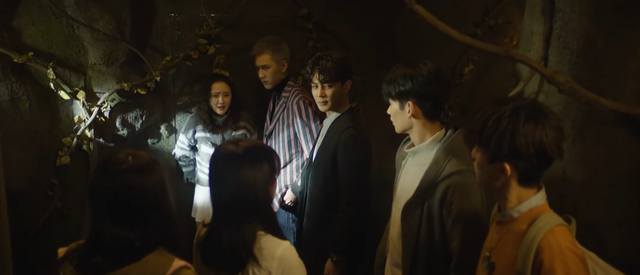 发出尖叫的刘萍见到你们赶来,恐惧地指着前方的石墙,声音颤抖地说: