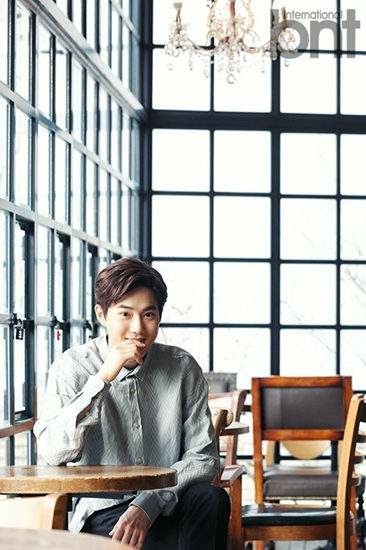 答应下来的昭熙走到一边的台子上坐下非常认真的摆出一个poss等着俊勉欧巴按下快门键的一刻