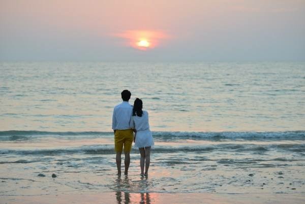 走在海边的二人