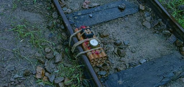 而炸弹就在铁轨上,当火车驶过铁轨的时候炸弹爆炸,