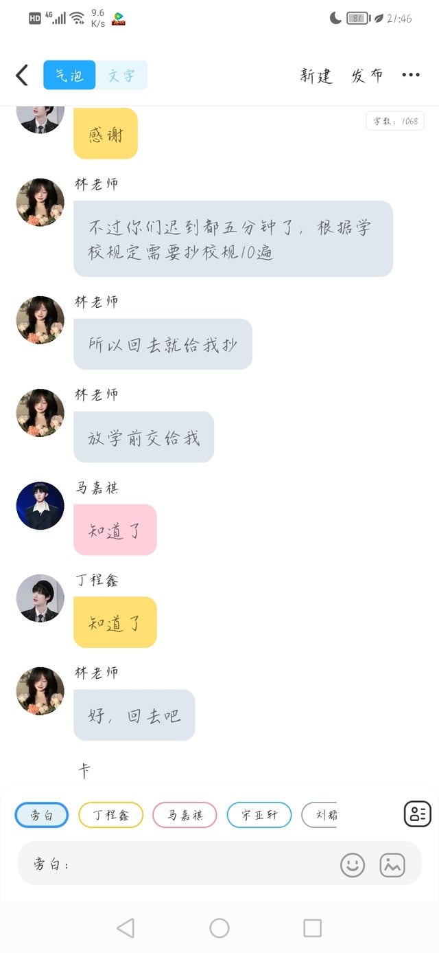 作者今天放学前被罚抄了