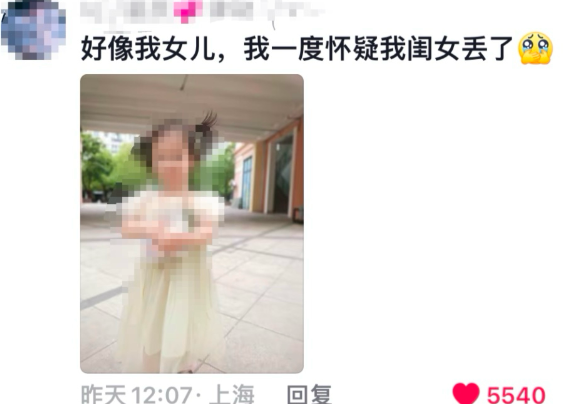 夏听星有惊无险。 本来这事也就过去了。结果没想到,有人把视频发在了网上。 而同在上海的王女士看到了,惊了一身冷汗—— 因为那个走丢的女孩和自己女儿实在太像了。 让她一度怀疑是自己闺女走丢了。