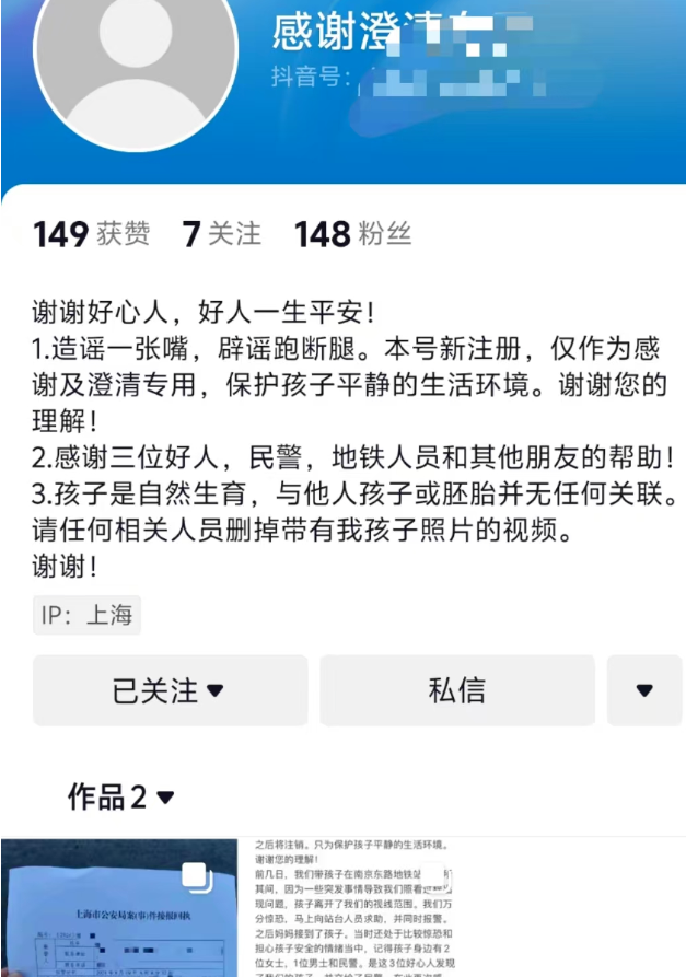 夏听星王女士彻底不淡定了。 因为她感觉,这不是一个简单的巧合。 她自己的女儿是2020年出生的,今年刚满4岁,是人工受孕的试管婴儿。 而做试管婴儿的时候,培育的胚胎没用完。 她当时就决定把剩下的胚胎放在医院里冷冻,以备将来生二胎。 那家医院也在上海。 这次看到上海地铁小女孩和自己女儿那么像,王女士立刻想到—— 医院会不会把自己的胚胎给别人用了? 否则为什么会有一个和自己女儿这么像的孩子? 想到这种可能性,王女士顿时头皮发麻,几乎崩溃。她急切地想找到失踪女孩的家长,想问清情况。 但是越急越不顺利。 她找到地铁民警。 民警说,没有证据不能透露女孩家人的信息。 王女士情急之下,干脆在网上发视频寻人,希望对方能去做个亲子鉴定。 之后还报了警。