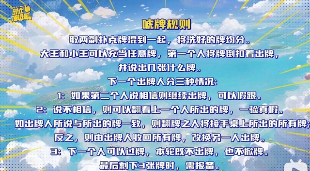 后面进行游戏的时候,果然是唬牌,他们说得牌你怎么听都不太可能,好在你玩着玩着就懂了,可马嘉祺真的是,手里的牌越来越多,还有宋亚轩,你看着就心累。
