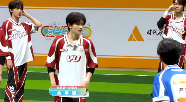 严浩翔一下子把余宇涵抓住,不过余宇涵回到了红队的区域,红队积得一分。