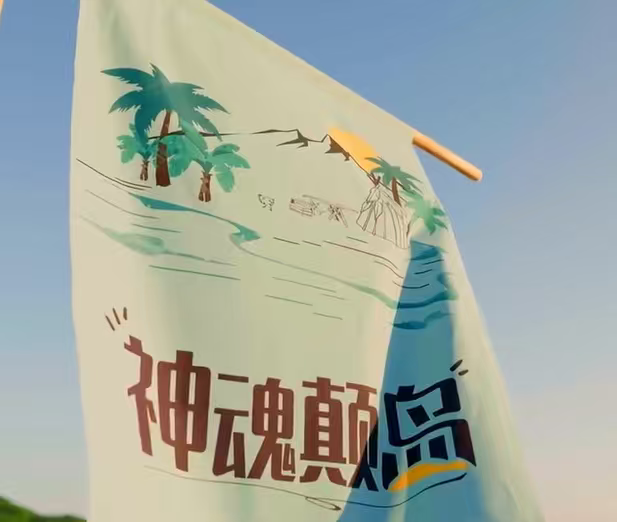 严浩翔“宝宝,你看”(手拉着旁边的旗帜)“神魂颠岛”