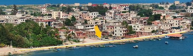 村长指着前面的那条路,“在海边,就这条,这条到海边”