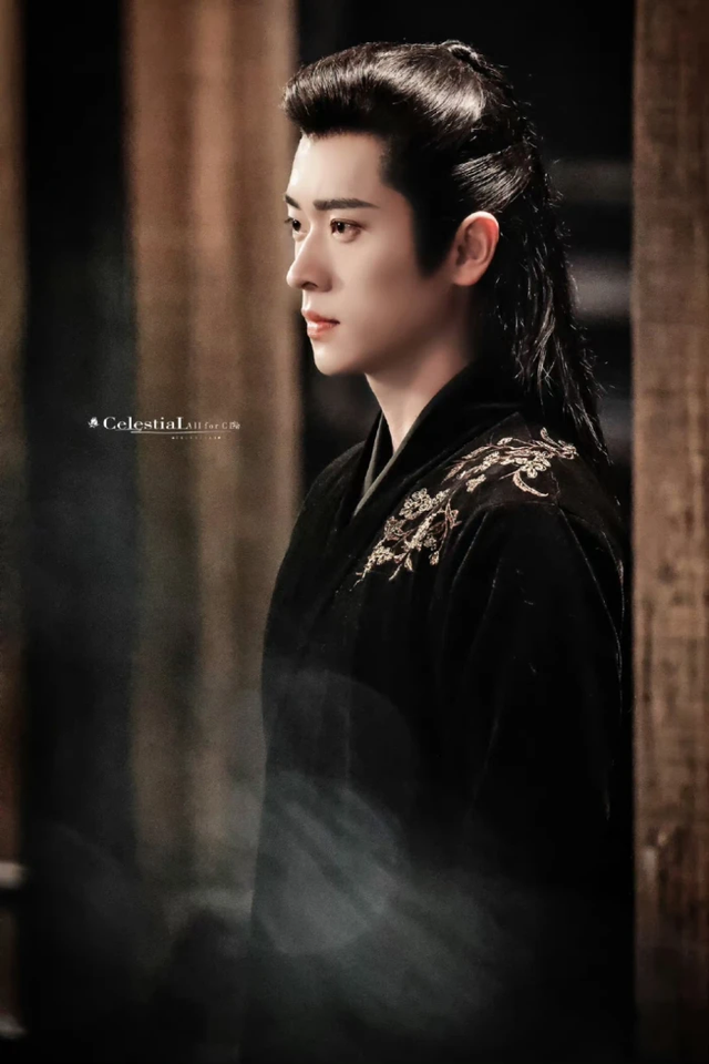 拥有着一头乌黑如墨的长发,微卷的发丝在阳光下泛着淡淡的光泽。他的发际线整齐划一,如同一幅精心绘制的画卷。一对剑眉下,是一双深邃明亮的眼睛,像是含有星辰的宇宙,让人无法移开视线,那人便是宫二先生宫尚角