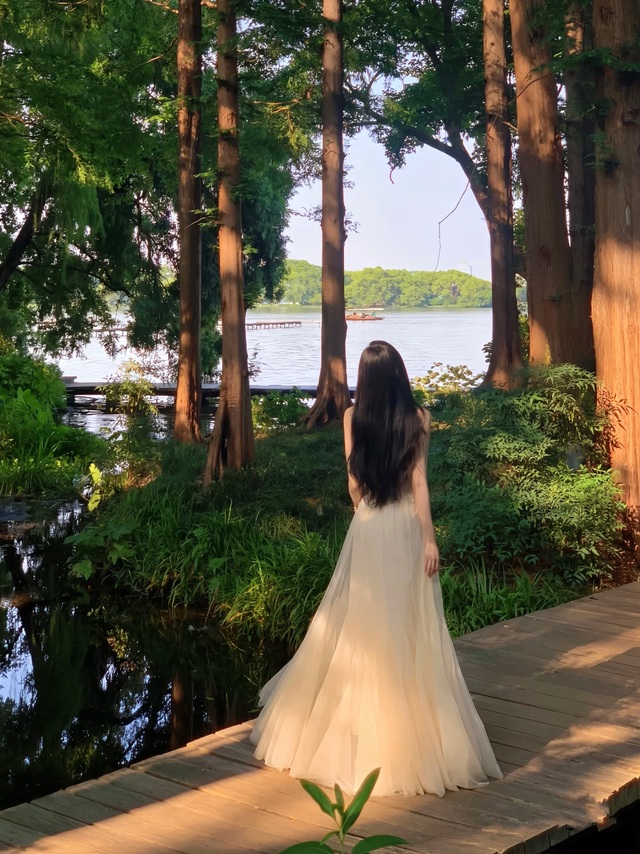 她一袭白裙,如同清晨的露珠,晶莹剔透,散发着淡淡的光辉。