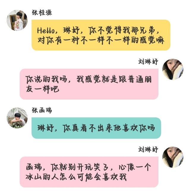 张桂源Hello,琳妤,你不觉得我那兄弟,对你有一种不一样的感觉嘛