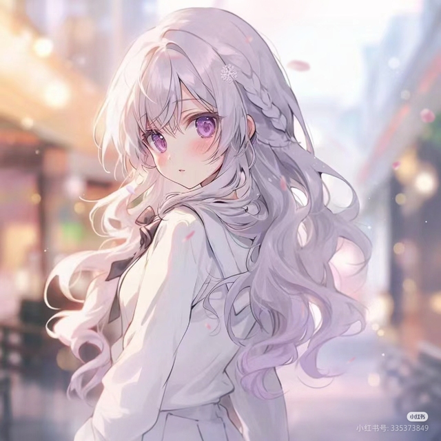 白紫色的长长发,神秘紫的眼眸