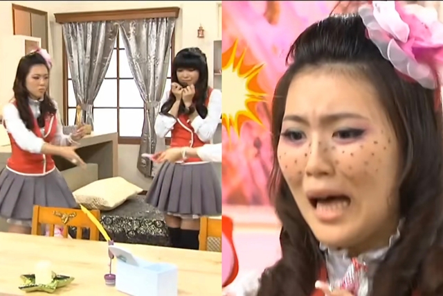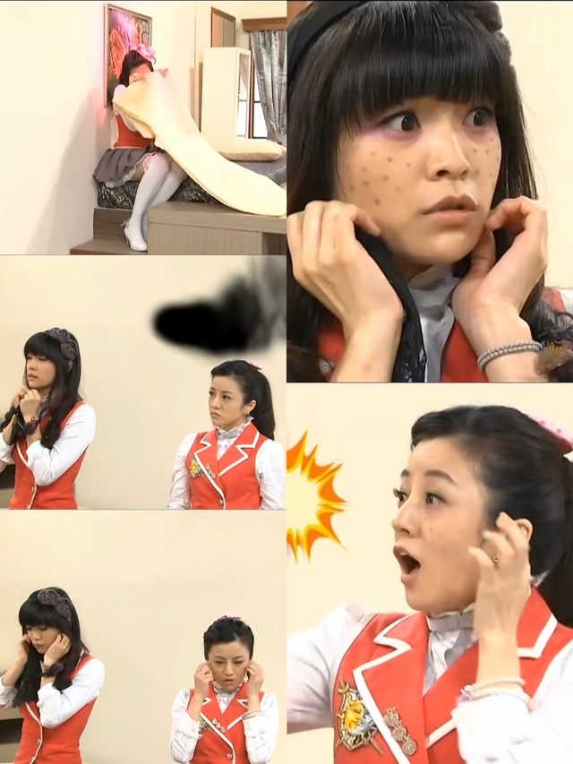 芭瑞丝刚把头转过去吐唇釉的时候,当她把脸转过来的时候脸上就出现了好多痘痘,泰咪跟茱丽叶吓得叫了起来