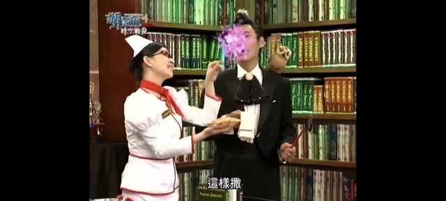 大甜甜老师一边说一边就开始在帕主任身上撒来撒去