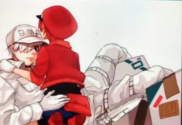 “是谁呀?”红细胞走到门边从猫眼往外看,“哎呀!是你的舍友呀!”红细胞打开门,4989号白细胞走了进来,“你好呀红细胞妹妹,告诉我白哥在哪!?”“在里面……”红细胞话还没说完,他就飞了进去,“不好意思失礼了啊啊啊!”“1146你果然在这!我前面去巨噬细胞小姐那里找你,她说你已经出院了!呜呜呜受了这么重的伤……你的哥们都心疼哭了……”4989号白细胞一下子抱住1146号白细胞,“你就好好休息吧,杀菌的事情就交给我们吧!”他转过头望着红细胞,“谢谢你照顾我的儿子1146号,有你在爸爸就放心了……哎呦!”“谁是你儿子啊!”白细胞1146号把他脸用力揪了一下,“笨蛋!”突然,从4989号的口袋里传来了白噪音,“这里是U-2626号,这边细菌有点多,快来杀!”“收到。”4989号回复之后,拔出小刀,“那我先走了,1146号好好休息,就不要想着如何杀菌了!”