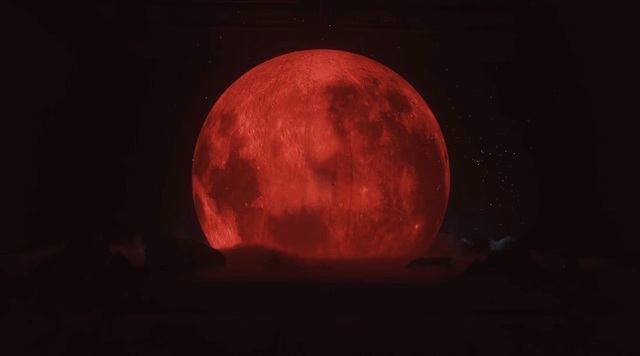夜幕低垂,星河静谧,但这一切都被那悬挂于天际的巨大红月所夺目