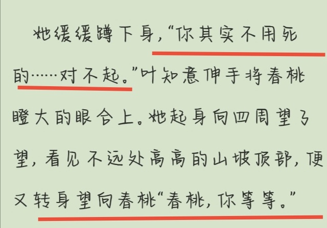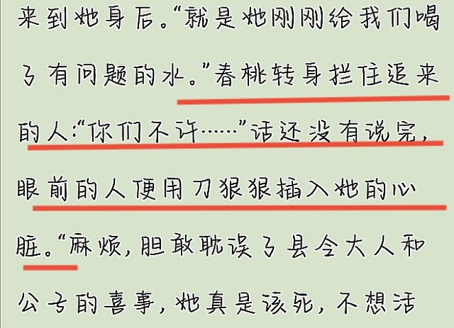 这里春桃(叶知意的贴身丫鬟)遭受无妄之灾牺牲。