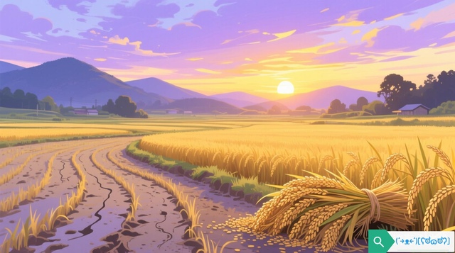淘乐看着眼前的田地,看着暮日西沉的景色,眼神怅惘,说:唉,什么时候才能收完稻谷呢?”
