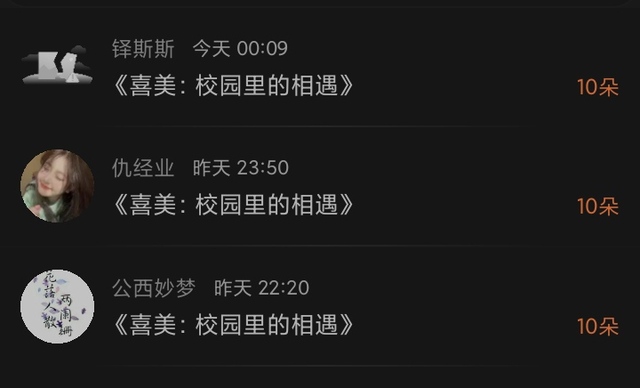 千韩曈(作者)感谢以下给我的作品收藏和送小花花
