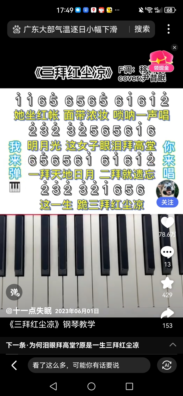 作者大大这个谱,这是最近我要弹,然后呢,虽然说我只是这个,我逗逗我们班那些天天说让我谈的,我说来弹你唱,你能不能接上就看你了?就是前头他唱,然后到的时候他会提示我一下,就手势告诉我,因为我们打的是视频嘛,然后呢,一到那然后就特快的弹,他都给我搞蒙了,然后呢,一到那他挑战反射的唱的特快,然后我哎,不好意思,这和我弹的是慢的~