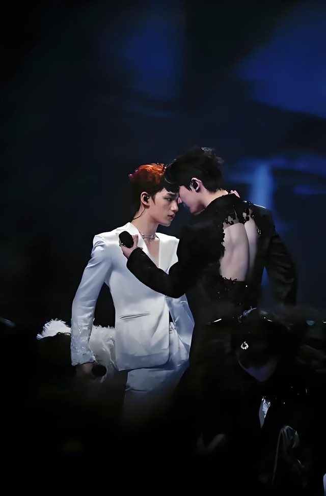 丁程鑫把手轻轻的搭在了马嘉祺的手上面,两人跟着音乐的节拍共同舞动了起来。也不知道是凑巧还是故意的,一人穿着白色拖地服装,另一人穿着黑色拖地服装,两个人站在一起,特别亮眼,果然不过一会儿他们就被邀请到舞台上跳舞了。