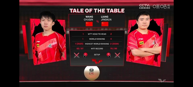 隔天比赛王楚钦和梁靖崑打