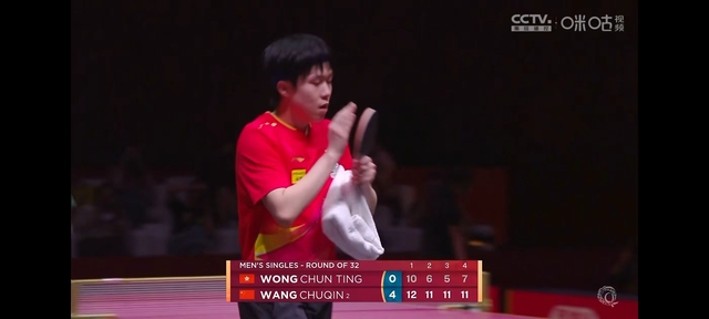 热身开始前黄镇廷仔细打量了一下自己的拍子,因为王楚钦的事黄镇廷也变得小心翼翼了