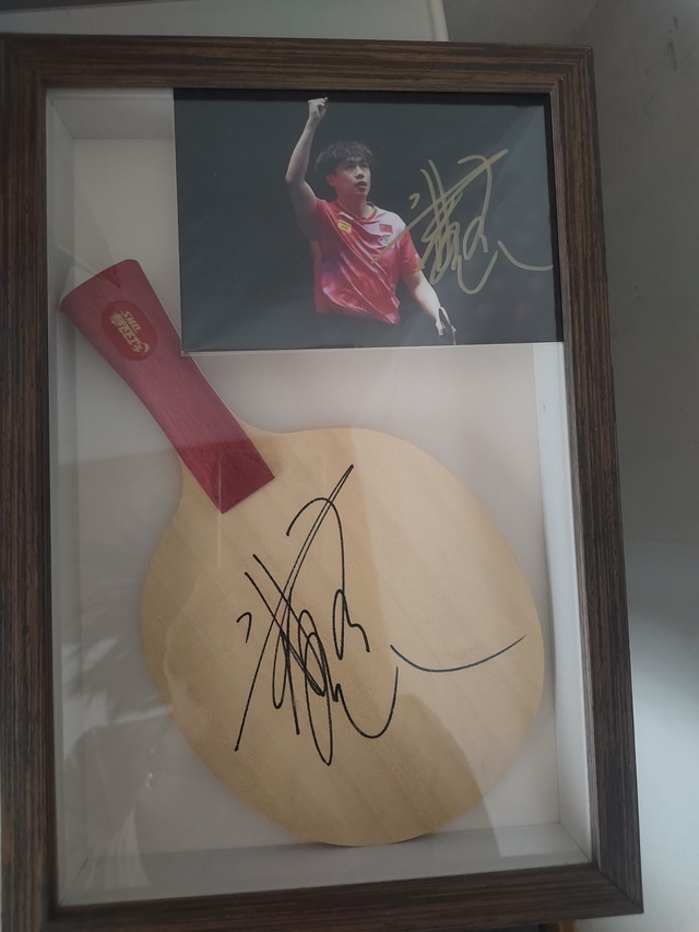 王楚钦哎乖宝,那怎么这副球拍和签名照放在相框里了?