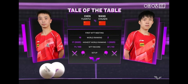 很快下午一点左右王楚钦和陈垣宇的比赛开始