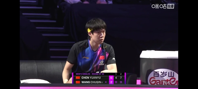 第二局的比赛,王楚钦以11:7的成绩赢了陈垣宇,拿下第二分