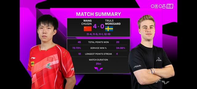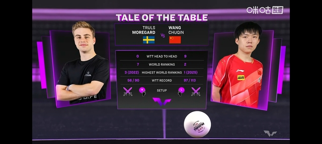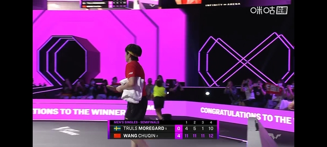 就这王楚钦一个劲哄着自家小姑娘,时间过得很快王楚钦和莫雷加德的比赛马上开始了