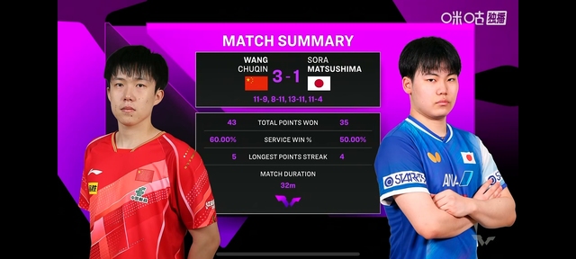 最终比赛不出意外的王楚钦以3:1成绩赢了松岛辉空拿下这场比赛,获得首场比赛的开门红