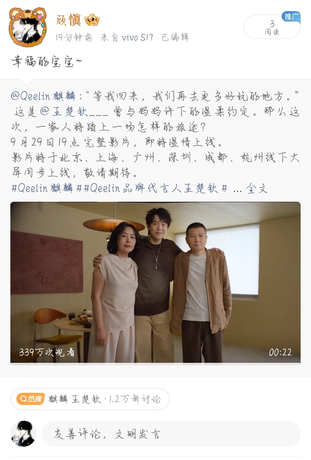 顾愼“等我回来,我们再去更多好玩的地方。” 这是@王楚钦___ 曾与妈妈许下的温柔约定。那么这次,一家人将踏上一场怎样的旅途? 9月29日19点 完整影片,即将温情上线。 影片将于北京、上海、广州、深圳、成都、杭州线下大屏同步上线,敬请期待。 #Qeelin麒麟##Qeelin品牌代言人王楚钦