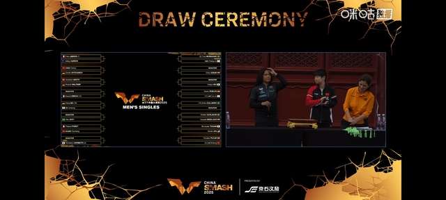 聊天之间抽签舞台上主持人结束开场白,紧接着是京剧表演,表演结束后就是女子单打的抽签,王楚钦和雨果·卡尔德诺拉上台抽签,很快全部女子单打抽签出来了